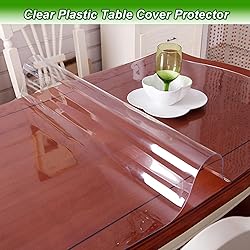 【Clear Table Cover Protector】: Made from BPA-free, odorless PVC, this clear table protector is designed for safe use around kids and food. Its durable thickness helps reduce the risk of scratches, dents, spills, and everyday messes while maintaining the natural look of your furniture. Works well on dining tables, wired fridge shelves, and even during kids’ meals or craft projects 【Thick and Heavy Duty Table Pad】: Our 1.5mm and 2mm table protector mats provide reliable heat-resistant, waterproof, scratch-proof table protection. The 1.5mm pad stays firmly in place, while the 2mm version offers enhanced heat resistance up to 176°F / 80°C, ideal for dining tables, wooden tables, restaurants, and hotels. For longer lifespan, place a mat under hot dishes 【Plastic Table Cover Easy to Clean】: This waterproof clear table cover has a smooth, transparent, non-wrinkle surface that wipes clean easily. The thick table protector prevents spills, cat scratches and even fork punctures while keeping a glass-like look. It fits well, has smooth kid-safe edges, and can be cut to size. Customers also love its resistance to makeup and nail polish 【Cut to Fit Table Size】: This clear table cover is ideal for your dining table, coffee table, office desk, vanity or manicure table. Our table protector arrives slightly larger to allow trimming. Use sharp scissors, a pencil and a ruler for a perfect cut on square, rectangular, oval or irregular tables. Contact our support team if you need help choosing the right size. It is our pleasure to help you 【Versatile & Durable Table Protector】: This scratch- and heat-resistant PVC vinyl cover keeps your tables safe from spills, scratches, stains, and everyday wear. Perfect for wood, marble, glass, desks, TV stools, dressers countertops, and even hard floors. Buyers love it for kids’ crafts, family meals, parties, DIY projects, restaurants, and hotel buffets, while still showing off the natural beauty of your furniture.