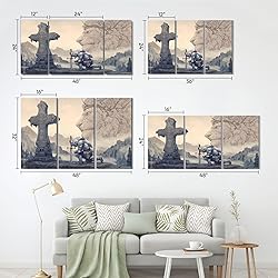 Weone Artwork 3 Panel Canvas Wall Art Christian Hyper Detailed Fantasy Art Winged Knight Crosses Lion Mural Stretched & Framed Art Prints Modern Painting Wall Decoration Ready to Hang Unique Designed