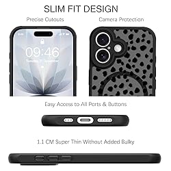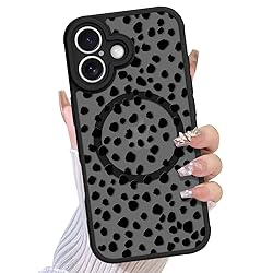 TEAUGHT Compatible with iPhone 17 Case Support for MagSafe Cute Pattern Speck Spot Camera Protection Matte Skin-Touch Cover for Girls Women -Black