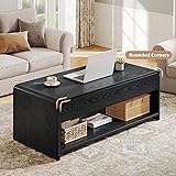 - Homiflex Lift Top Coffee Table, 35'' Modern Coffee Table with Hidden Compartment & Open Shelf, Curved Profile Design, Converts to Home Office Table, Dining Table, Center Table for Living Room, Black