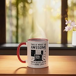 Are you a web developer who make beatiful website interface? If yes, then This Is What An Awesome Web Developer Looks Like is for you. Ideal for website devolopers who think and breathe code from HTML, Javascript, PHP, C, C#, C++, or Python. Are you an expert in website development? Are you a computer engineer or an information technology graduate who can handle different programming scripts? If yes, grab this. Show everyone that you are certified tech savvy with this programming design. 11-ounce ceramic mug is dishwasher and microwave-safe, lead and BPA free Features glossy finish with accent colors on interior, handle, and rim of two-tone designs