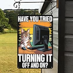 Funny Cat Tech IT Support Computer Engineer Programmer Retro Vintage Tin Signs Wall Art Encouragement Gifts for Women Home Office Bedroom Living Room Cafes Wall Decor 8x12 Inch