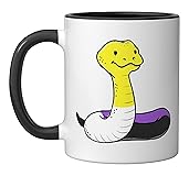 Snake Nonbinary Pride 11-ounce ceramic mug is dishwasher and microwave-safe, lead and BPA free Features glossy finish with accent colors on interior, handle, and rim of two-tone designs