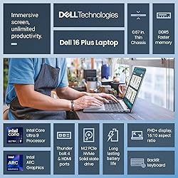 ELITE PERFORMANCE: Powered by the latest advanced Intel Core Ultra 9 processor (8-cores, 8-threads, on par with Intel Core i9-13900H) and a NPU for AI tasks, the Dell Plus 16 laptop delivers exceptional performance for real-time multitasking, creative projects, and heavy AI tasks. Switch seamlessly between apps, edit videos, or manage demanding workloads with the Dell laptop touchscreen computer. With an intelligent design, the Dell 16 inch laptop stay cool and efficient IMMERSIVE DISPLAY: Enjoy crisp, expansive visuals on the large laptop Dell with a 16" FHD+ (1920 × 1200) IPS Touch display featuring a 16:10 aspect ratio and touchscreen capabilities. The Dell 16 inch laptop offers vibrant colors and wide viewing angles, and ComfortView Plus to reduce blue light and protect your eyes. With Intel Arc graphics, the Dell touchscreen laptop delivers crisp images and smooth visuals for work, study, or entertainment OPTIMIZED PRODUCTIVITY: With 32GB on-board high-speed DDR5 RAM (up to 2.5X faster than DDR4) and a 2TB PCIe SSD (15X faster than HDD), the Dell laptop 16 inch delivers blazing-fast multitasking for business work, creativity, and gaming. Built with AI-powered octa-core processor, the Dell touch screen laptop stays cool and efficient. Running Windows 11 with AI Copilot, the Dell 16 laptop computer streamlines workflows and enables faster productivity for students, professionals, and creators PREMIUM DESIGN: The Dell business laptop features a full-size backlit keyboard with a numeric keypad, making typing and number input effortless even in low light. A fingerprint reader provides fast, secure access for peace of mind. Housed in a durable aluminum chassis in Ice Blue, the Dell laptops touchscreen computer includes a wide-angle FHD webcam with dual microphones and a mechanical privacy shutter, ensuring clear video calls and reliable security wherever you work RELIABLE CONNECTIVITY: Designed for modern work, the Dell 16 laptop AI PC offers fast, secure connections with Wi-Fi 7, Bluetooth 5.3, USB-A, USB-C (10Gbps, PD, DisplayPort), Thunderbolt 4, and HDMI 2.1, connecting up to 3 extra monitors. With AI-optimized performance, the Windows 11 Pro laptop tackles tough tasks smarter and faster. Featuring long-lasting battery and a slim design, the Dell 16 Plus delivers uninterrupted productivity all day long or on the go