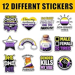 12 Pcs Non-Binary Stickers – Gender Kills My Vibe, Nonbinary is Valid, The Only Choice I Made was to Be Myself – Stickers for LGBTQ+ Pride, Supporters, Water Bottle, Tumbler, Laptop 3 Inches