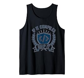 - Showcase coding pride with a bold courier font graphic featuring “If it compiles, ship it” in a navy and white crest complete with a “ship it” banner. This tech-inspired design captures the spirit of software development and coder culture. Ideal for developers, programmers, engineers, and tech fans looking for a standout graphic that blends vintage crest style with modern code humor. Makes a great novelty for hackathons, coding meetups, and everyday techwear.