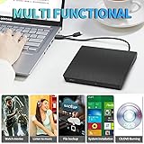 Effortless Plug & Play Operation: Simply connect this external CD/DVD drive to your computer's USB Type-A or Type-C port using the integrated cable. No external power adapter or additional drivers are needed. It's automatically recognized by your system (Note: Mac requires a readable disc inserted to display the icon). Get started immediately with your preferred disc software. High-Speed USB 3.0 Performance: Experience fast data transfers (up to 5 Gbps) via USB 3.0, backward compatible with USB 2.0/1.1. Achieve maximum read/write speeds of 8x for DVDs and 24x for CDs. Enjoy smooth playback and efficient burning with advanced error correction, noise reduction, and low power consumption. Broad System Compatibility: This USB external CD/DVD drive offers extensive compatibility, working seamlessly with Windows 11, 10, 8.1, 7, Vista, XP, 2000, ME, and 98, alongside most Linux distributions. It supports laptops, desktops, and all-in-one PCs from leading brands including HP, Dell, Lenovo (ThinkPad), ASUS, LG, Samsung, and Microsoft. It is also fully compatible with Apple MacBook Pro, MacBook Air, iMac, and Mac mini/Studio running macOS 10.16 or later. For optimal power stability with desktop computers, connect directly to a rear USB port. Note: Not compatible with ChromeOS (Chromebooks), iPads/tablets, TVs,vehicles (cars/trucks),some Surface models, or Blu-ray/4K discs. Wide Disc Compatibility & Secure Operation: Reads and writes a wide range of standard 120mm discs including CD-ROM, CD-R, CD+/-RW, DVD-ROM, DVD-R, DVD+/-RW, DVD-R DL, and VCD-ROM. The design provides ample clearance within the disc bay, preventing damage to discs with thicker labels and minimizing risks of skipping or ruined burns/reads. Portable & Stable Design: Compact, lightweight, and solidly built for durability. Features anti-skid rubber padding, a brushed texture shell, an embedded USB cable slot, and includes both USB-A and USB-C connectors for easy portability and stable use anywhere - office, school, home, or travel.