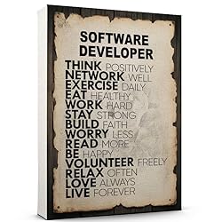 Healthy Mindset Software Developer Canvas Art, Vintage Rustic Style Software Developer– Eat Well, Work Hard, Relax Often Poster Design, Ready to Hang