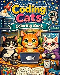 - Coding Cats Coloring BookUnwind, laugh, and get creative with Coding Cats Coloring Book! This playful coloring book is packed with funny coding puns, adorable cats, brain-teasing games, and relaxing tech-themed illustrations.Perfect for programmers, cat lovers, and anyone who enjoys a little geeky humor, these pages are designed to help you relax, de-stress, and have fun offline. Whether you’re coloring for mindfulness, laughs, or gifting a fellow coder, this book delivers hours of purr-fect creativity.Grab your favorite markers or pencils and start coloring where cats rule the code!