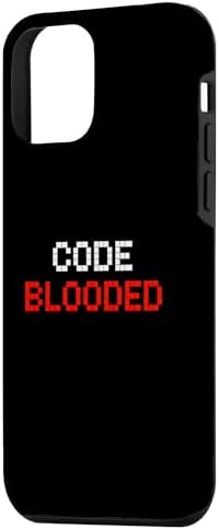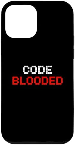 Large blocky pixel text spells out CODE BLOODED in a two tone layout evoking classic 8 bit aesthetics. Minimalist typographic look works well on a variety of background colors and is an easy way to show off programming pride. Great for daily wear at meetups hackathons or casual workdays