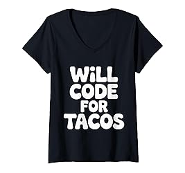 Women's Will Code for Tacos Programmer Coder - V-Neck T-Shirt