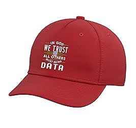 In god we trust - all others must bring data. Coding Design perfect for nerds and geeks who like programming in front of their computer. A funny Design perfect for developers who like hacking and debugging but also for data scientists who like working with a lot of data. Classic five-panel structured baseball hat with high-profile crown Adjustable fit; one size fits most adults