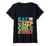 Women's Science Coder EAT Sleep Code Repeat Funny Nerd Computer V-Neck T-Shirt