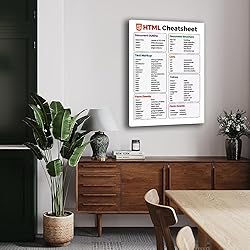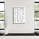 HTML Cheatsheet Poster Web Development Reference Visual Aid Designers And Developers Canvas Painting for Living Room Bedroom Decor 20x30inch(50x75cm) Frame-style
