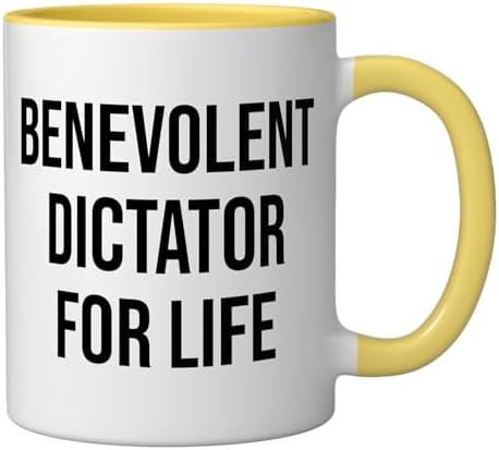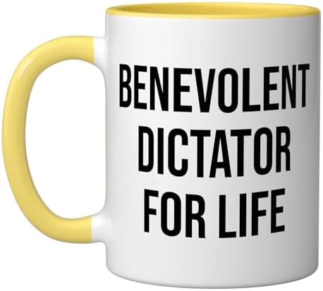 Benevolent Dictator for Life Software Developer Code Coder Ceramic Mug, Yellow/White