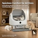 Zero-Effort Hygiene: Say goodbye to the daily scoop. Our patented sifting technology automatically separates waste from clean litter after every use, providing your cat with a pristine, fresh bed 24/7. Odor Defense System: Stop masking smells and start eliminating them. The fully enclosed waste drawer features a high-density odor defense system to trap bad smell and odor before they enter your home. Smart-Health Monitoring: More than just a litter box—it’s a health assistant. The integrated scale and mobile app track your cat’s weight and bathroom frequency, alerting you to potential health issues before they become emergencies. Whisper-Quiet Operation: Engineered with advanced Silent-Glide motors, the cleaning cycle is quieter than a library, ensuring your cat (and your sleep) remains undisturbed even in the middle of the night. Universal Multi-Cat Design: From 3lb kittens to 25lb Maine Coons, the spacious, open-entry interior is designed to accommodate multiple cats comfortably while reducing litter tracking by up to 50%.