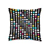 Vibrant abstract design featuring multicolored dots arranged in rhythmic vertical columns on a black background. A playful mix of white, blue, pink, yellow, and orange creates a lively, modern visual flow. Unique, show your personality receive compliments. Make your life colorful. Eye-catching geometric artwork inspired by sound waves, digital patterns, and retro pop art. Perfect for fans of bold color, contemporary design, and energetic, minimalist abstract aesthetics. Gets attention and looks good. 100% spun-polyester fabric Double-sided print Filled with 100% polyester and sewn closed Individually cut and sewn by hand Spot clean/dry clean only