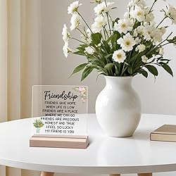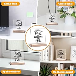 Notice: Your acrylic piece arrives with a protective film to prevent scratches during shipping. Simply peel it off from the corners to reveal a perfectly clear and glossy surface!Notice: Your acrylic piece includes a protective film to avoid scratches during shipping. Peel off the film from the corners for a clear, glossy finish. Perfect Size: This clear acrylic sign measures approximately 4 x 4 inches, making it a versatile addition to any space without taking up too much room. Its compact dimensions are ideal for desk or shelf placement. Unique Design: Crafted in a square shape, this clear acrylic sign features meaningful words, eye-catching patterns, and a high-quality printing technique for vivid and sharp graphics that stand out beautifully. Decorative Keepsake: Made of smooth, transparent acrylic, this decorative sign is not only visually stunning but also a compact keepsake that adds charm to your space while making a thoughtful gift. Home & Office Decoration: Perfect for enhancing any setting, this acrylic sign fits seamlessly on desks, coffee tables, nightstands, bookshelves, and more, adding an elegant touch to your decor."