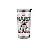 Coding themed programmer design for software developers and all programming lovers. Code Hard Debug Harder. Dual wall insulated: keeps beverages hot or cold Stainless Steel, BPA Free Leak proof lid with clear slider