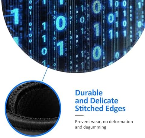 Blue Binary Code Round Mouse Pad Mat Portable Small Mouse Mat with Nonslip Base 7.9"