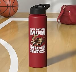 Ball Python regius design for snake owners and reptile lovers who have a ball python in an enclosure or terrarium. Snake food and snake toys for ball python enthusiast and python owner. Reptile keepers take good care of their snake python and provide toys and a hide for their ball python. Ball python costume for every python mom and python dad. Great for christmas, birthday, easter, fathers day or halloween. Dual-wall insulated stainless steel construction keeps beverages hot or cold, dishwasher safe and BPA free Leak-proof flip lid includes BPA free plastic drinking straw