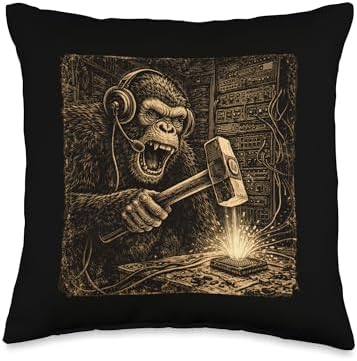 Server Room Monkey Sysadmin Devops Tech Humor IT Programmer Throw Pillow