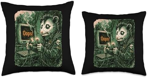 Trash Coder Possum Punk IT Programmer Debugging Throw Pillow