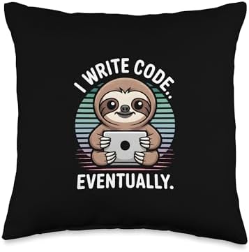 Ideal for relaxed programmers, software developers, and students who relate to slow but steady progress. With a cute sloth holding a device and the phrase I WRITE CODE.. EVENTUALLY.
