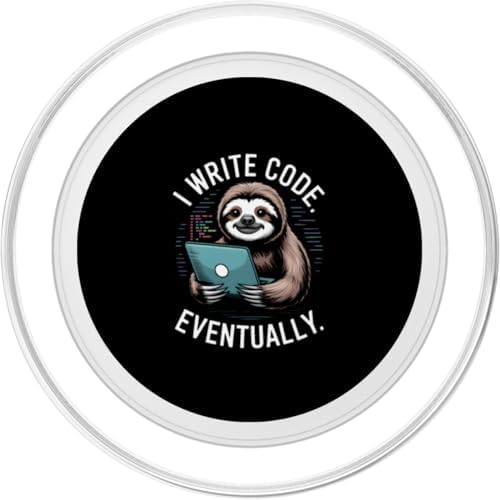 Ideal for relaxed programmers, software developers, and students who relate to slow but steady progress. With a cute sloth holding a device and the phrase I WRITE CODE.. EVENTUALLY.
