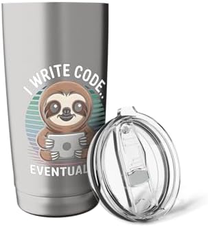 Ideal for relaxed programmers, software developers, and students who relate to slow but steady progress. With a cute sloth holding a device and the phrase I WRITE CODE.. EVENTUALLY.