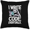I Write Code Eventually Lazy Sloth Programmer Life Throw Pillow