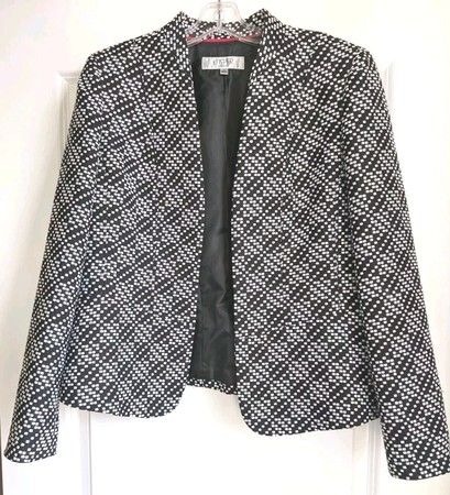 Kasper Separates Size 10 Black And White Suit Jacket Open Front Great Condition