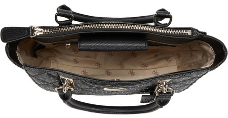 NEW GUESS Women's Black Shiny Logo Embosed Quilted Satchel Crossbody Handbag Bag