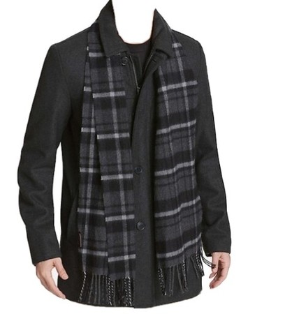 Dockers Mens (Size S CH) Wool Blend Walking Jacket With Plaid Scarf Black