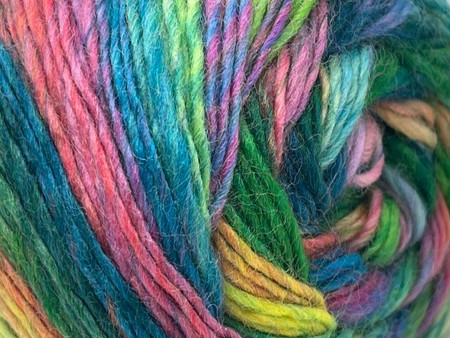- A light worsted, DK weight (weight #3) or you can knit it in sport weight patterns depending on gauge - choose a US 6 needle and watch the gorgeous colors appear. It's machine washable. Each skein looks different from the outide as with all self-striping yarn, but all the colors appear as your work progresses.