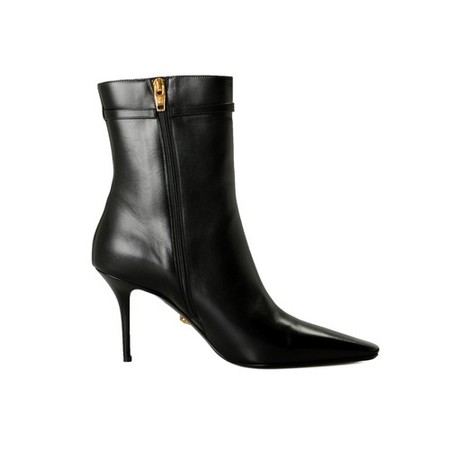 Versace Women's Black Leather Gold Medusa High Heel Boots Shoes US 10 IT 40