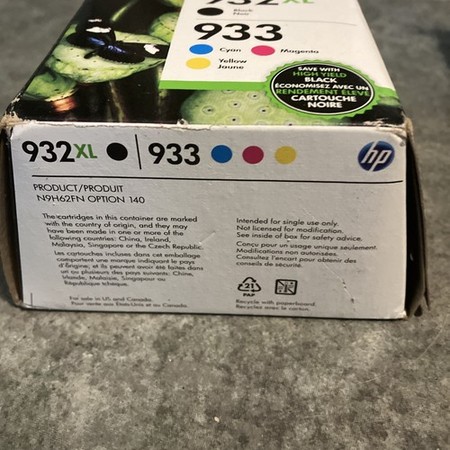 HP 932XL/933 (N9H62FN) Cyan/Black/Magenta/Yellow Ink Cartridge Exp Oct 2021