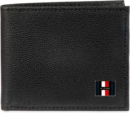 TOMMY HILFIGER Black Enamel Flag Logo Slim Fold RFID Bi-Fold Wallet NEW
