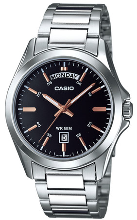 Casio MTP-1370D-1A2 Men's Stainless Steel Watch Black Dial Day Date 50M Water WR