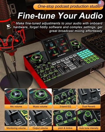 - Ideal for podcast recording, streaming, voice-over, and content creation. G10 DJ Audio Mixer ?. About this item. It can save your different voice modes, no need to set the sound again. A total of 19 voice modes can be saved for different needs.