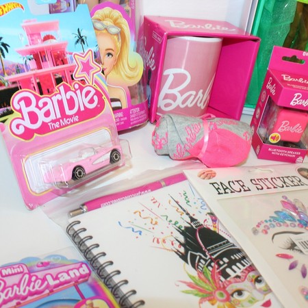- 10th Italian Doll Convention Accessories - 2024 "Goes To Carnival" - Magia 2000. This set includes a Barbie mug, Chromatic Couture Barbie doll, a Barbie doll with blonde hair, travel mug, keychain, face stickers, mini Barbie Bluetooth speaker, Hot Wheels, pins, notepad & magnet!