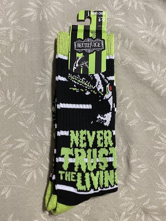 - Beetlejuice Never Trust The Living Crew Socks NEW /w Tags Bioworld 8-12