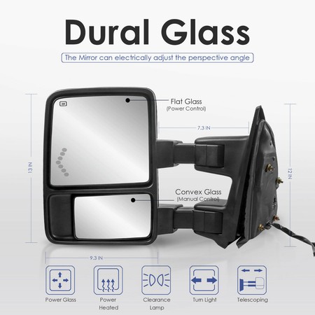 Package Included: 1x pair of tow mirror (Include Driver side & Passenger Side)