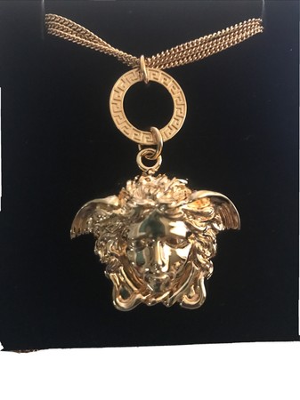 - Versace Medusa Head Multi chain Goldtone Necklace 16” NWT. pendant measures 1-1/2 “ across top & 1-1/8” top to bottom. Comes with authenticity card No box