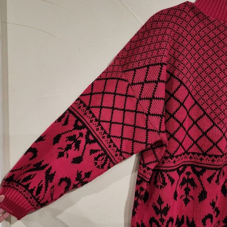 Vintage Classic Essentials Barbie Pink Damask Tulip Print Pullover Sweater 20W