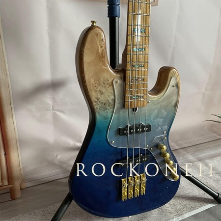 Blue Jazz Bass - Hand-Selected Burl Veneer/ Solid Basswood Body Active Pickups