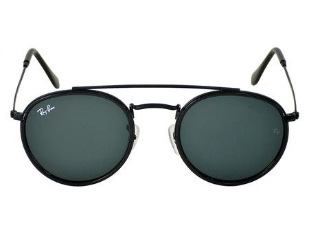 • Model No.: RB3647N. Style: Round Double Bridge. Experience ultimate eye protection and vision clarity with Ray-Ban sunglasses. Lenses Color: Blue/Dark Grey Classic. Ray-Ban signature on the right lens, and the iconic RB initials on the left.
