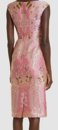 $2410 Etro Women Pink Metallic Brocade V-Neck Sheath Dress Size 40