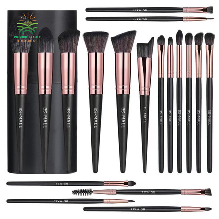 - Makeup Brush Set 18 Pcs Premium Synthetic Foundation Powder Concealers Eye Shadows Blush Makeup Brushes with Black Case (C-Rose). Number of Pieces 18. Ferrule Material Aluminum.