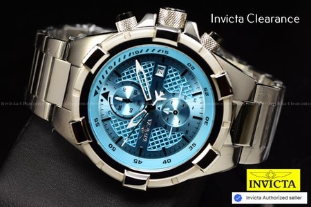 Invicta Men's AVIATOR 50.5mm LIGHT BLUE Chonograph Dial Stainless Steel Watch